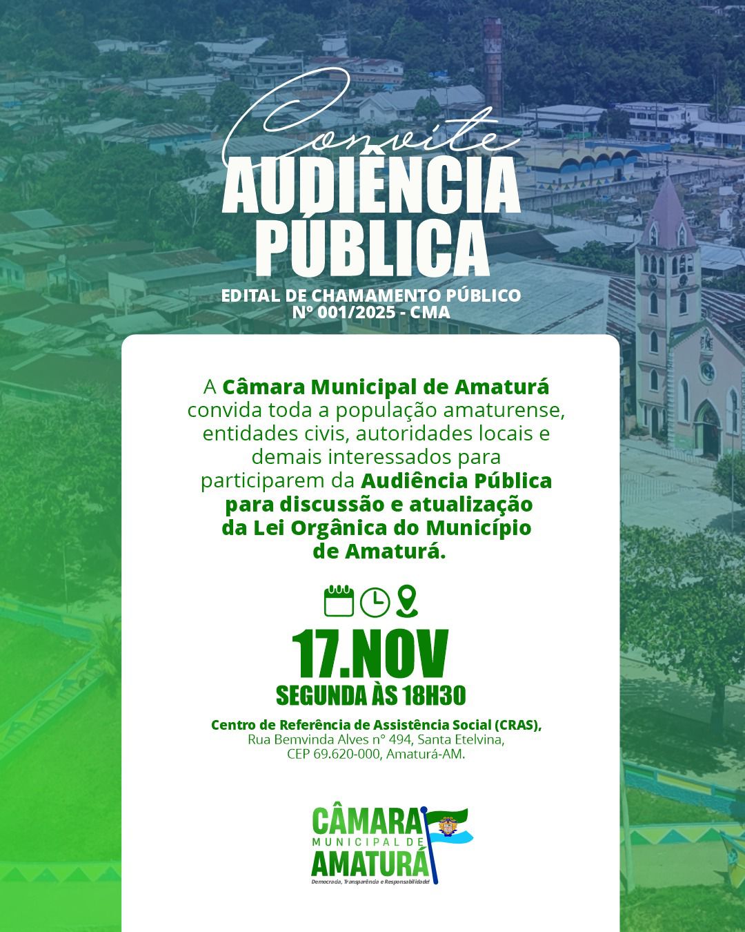 A Câmara Municipal de Amaturá convida toda a população para participar de um momento crucial para o futuro legislativo e